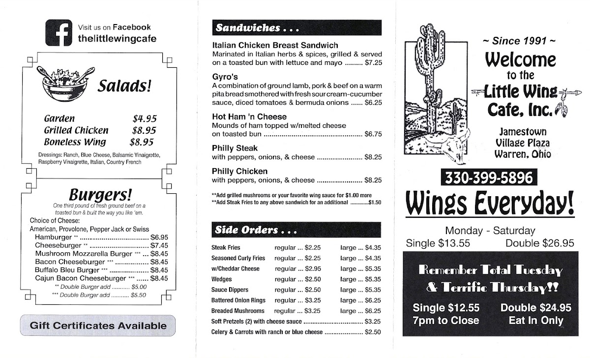 Little Wing Cafe Menu